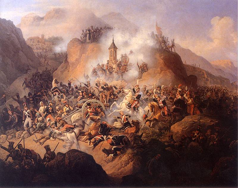 January Sucholdowski (1797-1875), Bitwa pod Somosierrą [Battle of Somosierra]. 1860. Oil on canvas. 144 x 193 cm. National Museum, Warsaw.