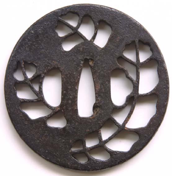 Sukashi tsuba, wisteria leaves carved in negative silhouette. Edo period.